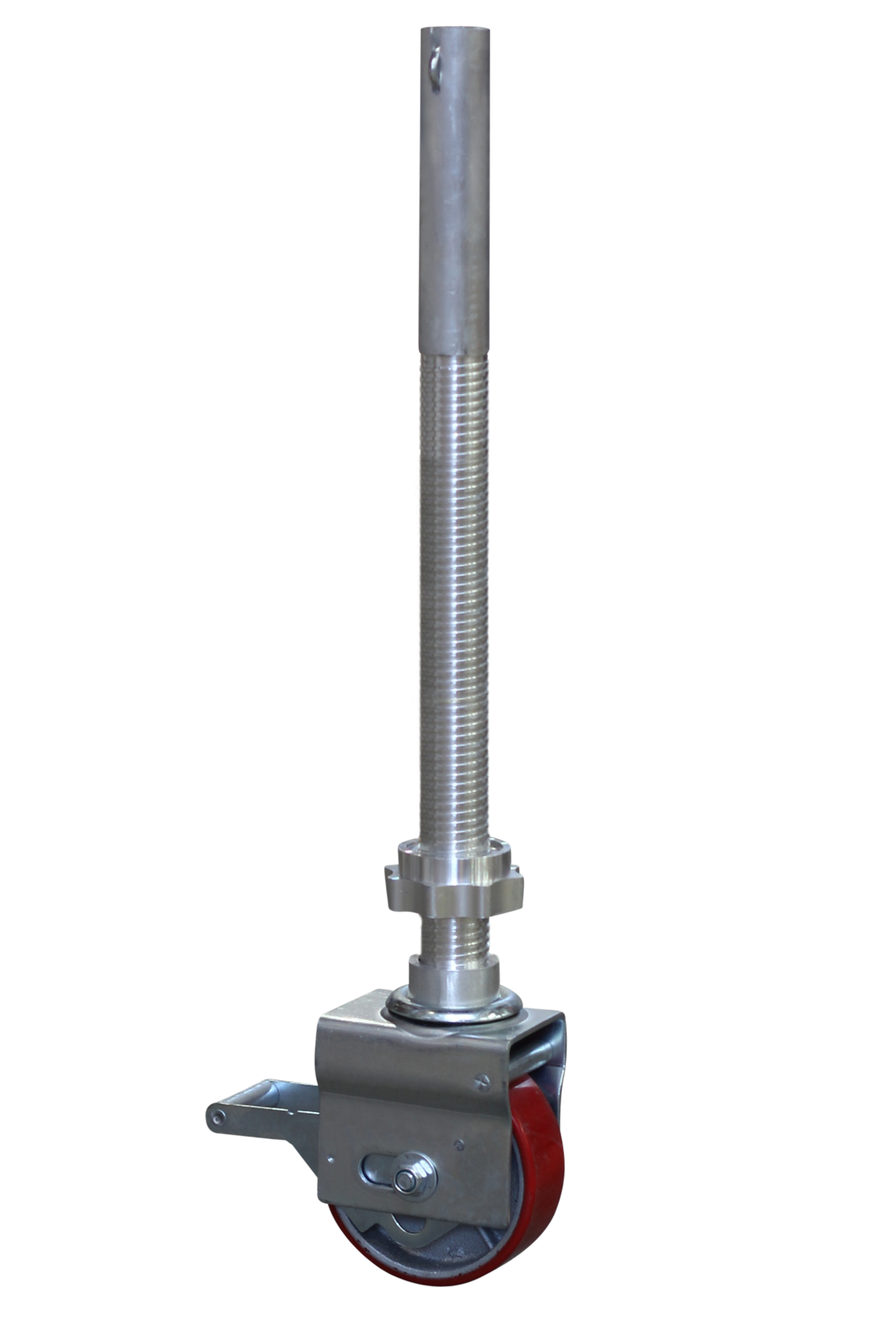 Larger diameter, heavy duty adjustable wheel, allows you to adjust your heights and stabilise your scaffold on uneven surfaces.