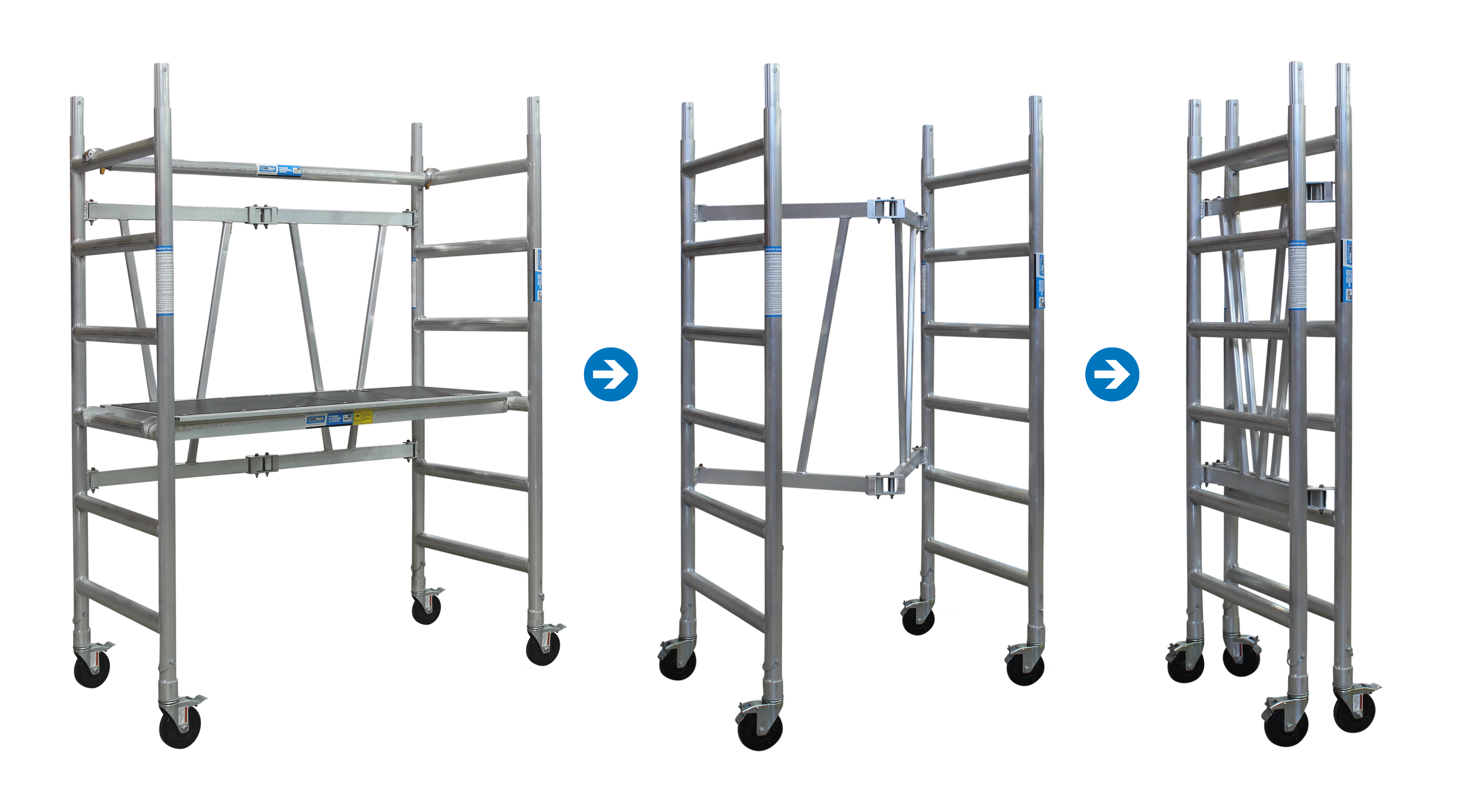 Height adjustable stabilisers (available with the tower kit) - Provides lateral support when working at heights. Required when platform is above 1.9m