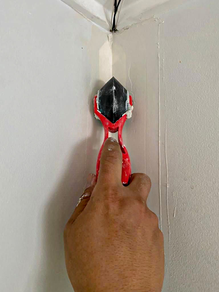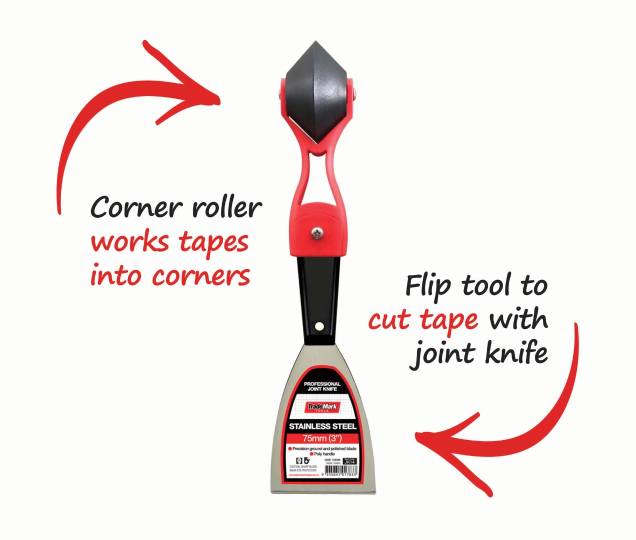Corner roller works tape into corners - flip tool to cut tape with joint knife